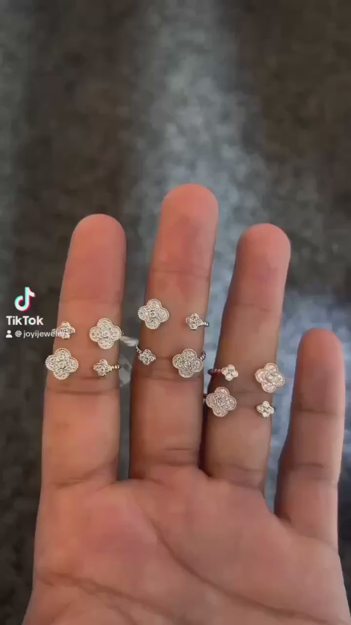 14 Beaded Clover Daimond Ring-Available in White, Yellow, or Rose Gold