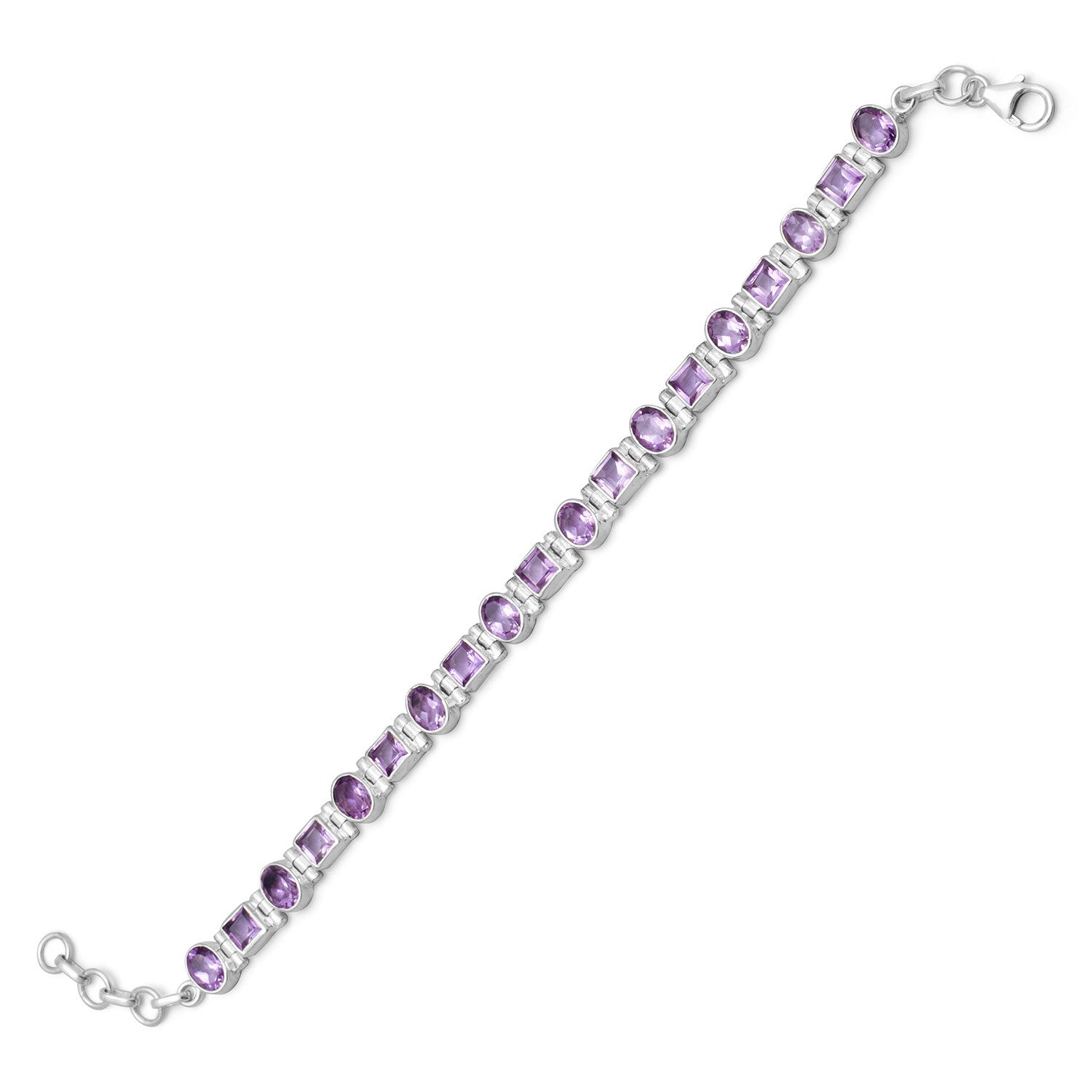 7" + .5" extension sterling silver bracelet features 7mm x 5mm oval and 5mm x 5mm square amethyst stone. Bracelet has a lobster clasp closure. .925 Sterling Silver