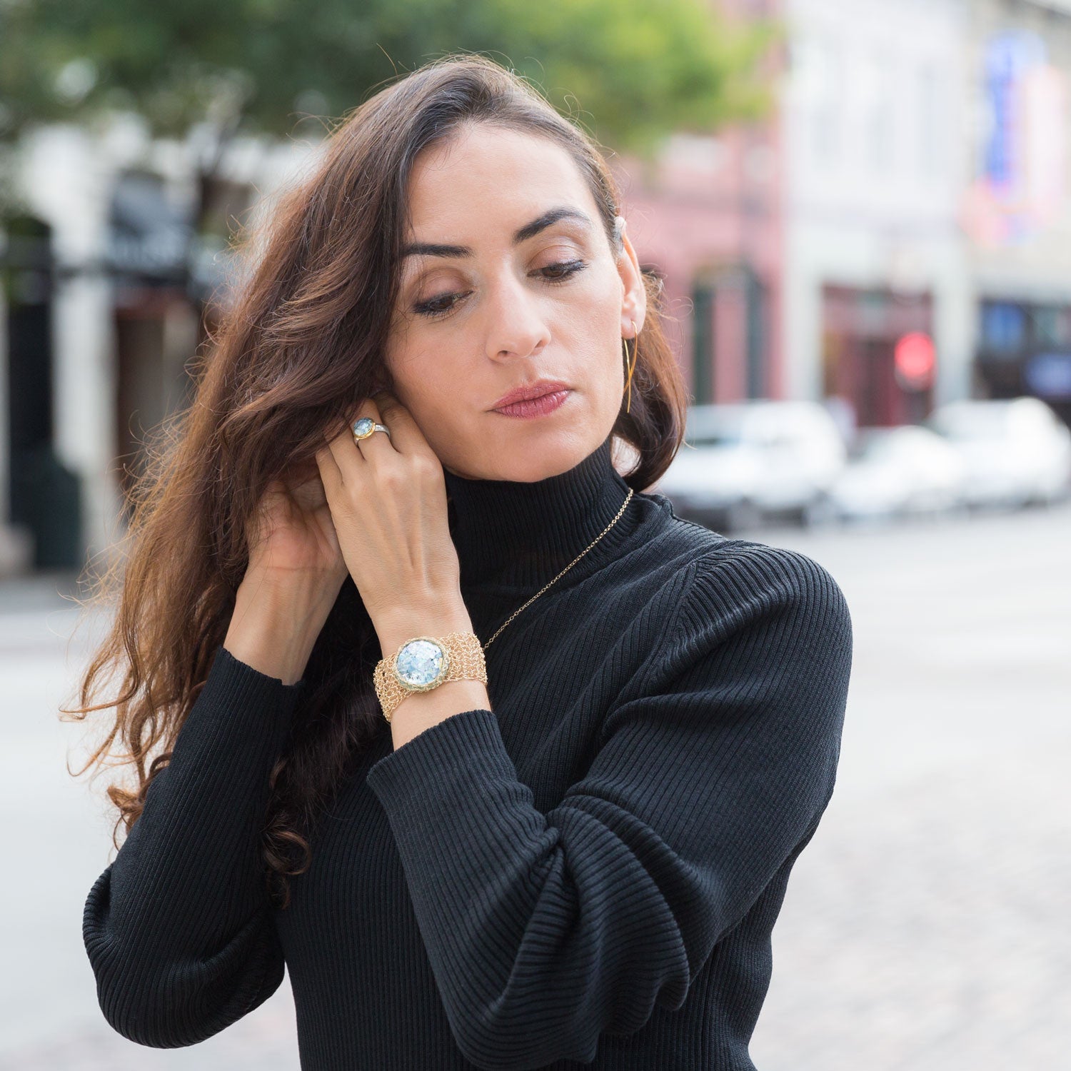 9mm Ancient Roman Glass with 18 karat gold plated sterling silver edge and hammered 3.5mm band. This ring is available in whole sizes 6-9. .925 Sterling Silver